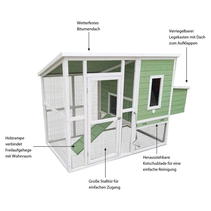 Komfortables Hühnerhaus mit Legekasten & Freiluftbereich